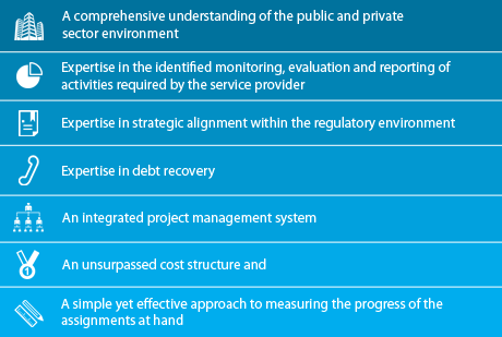 Empowerment of previously marginalized individuals: Our strategy to identify local persons in the area of a client; to appoint, train, and manage these historically disadvantaged individuals, to be part of project as local agents, thereby uplifting the local community through training, learnerships and employment. We also offer an internationally accredited training program - INTERNATIONAL CERTIFICATION FOR COLLECTION AGENTS IN CONSUMER DEBT – SA that enable the agents and collectors to become Internationally Certified Collections Advisors.